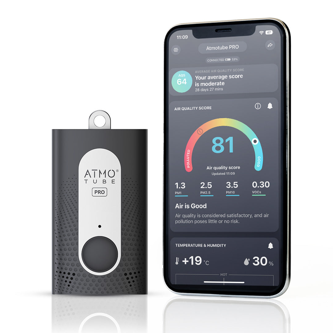 Atmotube PRO rileva gli inquinanti PM1, PM2,5 e PM10, come fumo, polvere, polline, fuliggine e muffa, oltre a un'ampia gamma di Composti Organici Volatili (COV). Tutto in tempo reale!